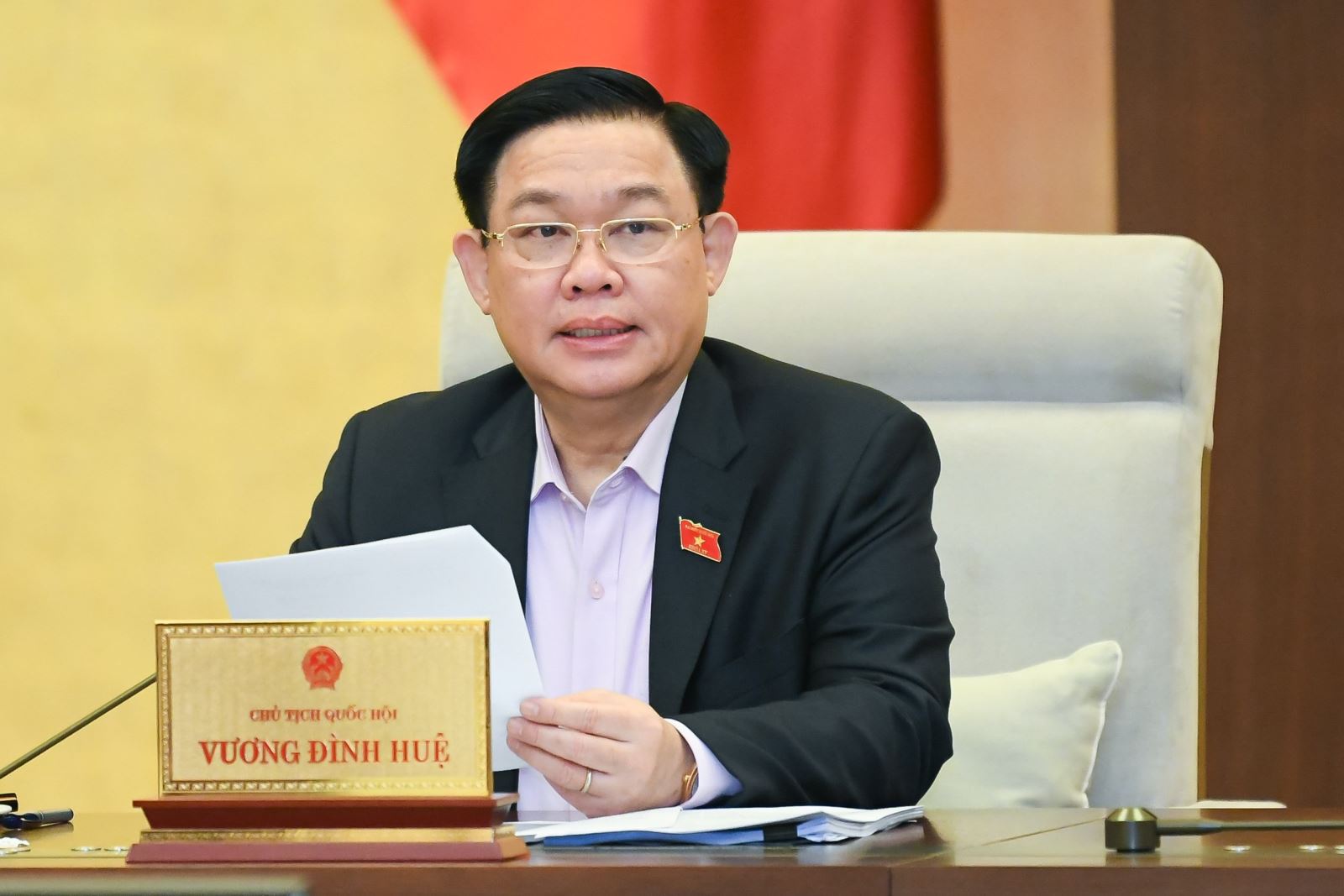 | Chủ tịch Quốc hội Vương Đình Huệ phát biểu kết luận nội dung thảo luận. Ảnh: quochoi.vn |