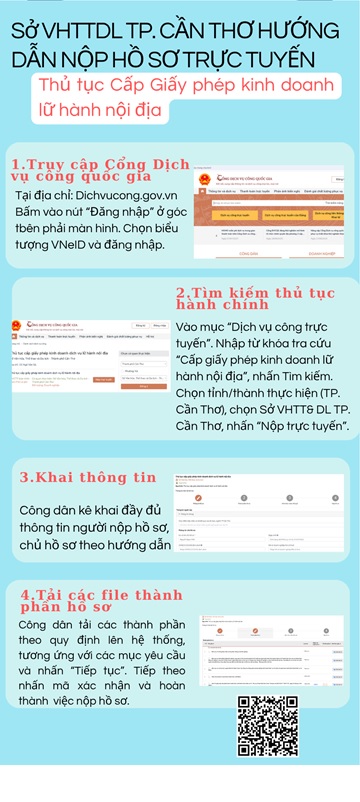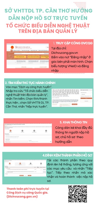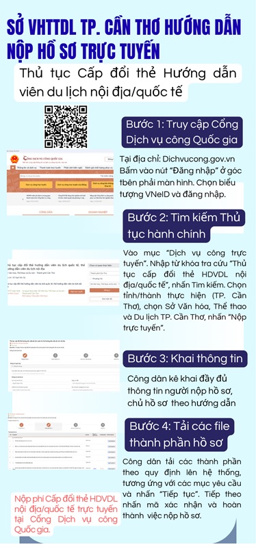 Từ 01/7/2025, cổng Dịch vụ công thành phố Cần Thơ đã ngừng hoạt động, tất cả các dịch vụ công trực tuyến được tích hợp và thực hiện duy nhất trên Cổng Dịch vụ công quốc gia (dichvucong.gov.vn). Theo đó, nhằm kịp thời hướng dẫn, hỗ trợ người dân nộp hồ sơ trực tuyến, không làm gián đoạn hoạt động giải quyết hồ sơ, phục vụ người dân, doanh nghiệp. Ngay từ 1/7/2025 Sở Văn hóa, Thể thao và Du lịch đã thực hiện hướng dẫn nộp hồ sơ TTHC trực tuyến thông qua hình thức Infographic. Qua hình thức này, giúp người dân, doanh nghiệp dễ dàng tiếp cận, dễ hiểu, dễ ghi nhớ, dễ thực hiện trong thực hiện nộp hồ sơ trực tuyến. Việc thực hiện Infographic trong hướng dẫn thực hiện thủ tục hành chính, giúp thay đổi cách truyền thông thủ tục hành chính từ văn bản dài sang hình thức cô động, ngắn gọn, mang lại hiệu quả truyền thông cao, nâng cao sự hài lòng của người dân, doanh nghiệp đối với sự phục vụ của cơ quan nhà nước./.
