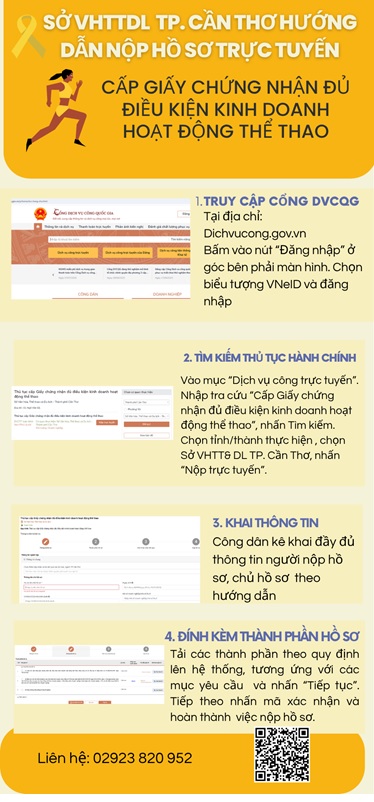 Nhằm hướng dẫn, tạo điều kiện thuận lợi người dân, doanh nghiệp trong thực hiện nộp hồ sơ trực tuyến khi có nhu cầu thủ tục hành chính. Sở Văn hóa, Thể thao và Du lịch thực hiện biên soạn, thiết kế quy trình nộp hồ sơ thủ tục hành chính (TTHC) trực tuyến thông qua hình thức Infographic đối với 08 TTHC thường xuyên phát sinh, chiếm 90% số lượng hồ sơ giải quyết TTHC của Sở: Thủ tục cấp thẻ hướng dẫn viên du lịch nội địa/ quốc tế; Thủ tục cấp đổi thẻ hướng dẫn viên du lịch nội địa/quốc tế; Thủ tục cấp giấy phép kinh doanh lữ hành nội địa; Thủ tục tiếp nhận hồ sơ thông báo sản phẩm quảng cáo trên bảng quảng cáo, băng-rôn; Thủ tục đoàn người thực hiện quảng cáo; Thủ tục biểu diễn nghệ thuật trên địa bàn quản lý; Thủ tục Cấp giấy phép đủ điều kiện kinh doanh hoạt động thể thao; Thủ tục cấp giấy phép xuất bản tài liệu không kinh doanh.